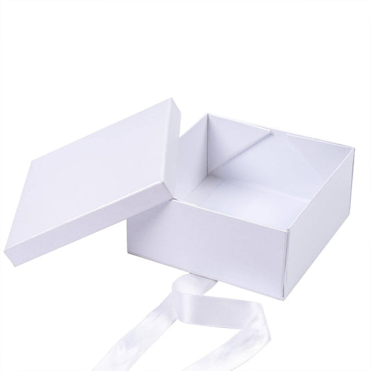 5" x 5" x 2.4" Gift Box w/ Satin Ribbon: White